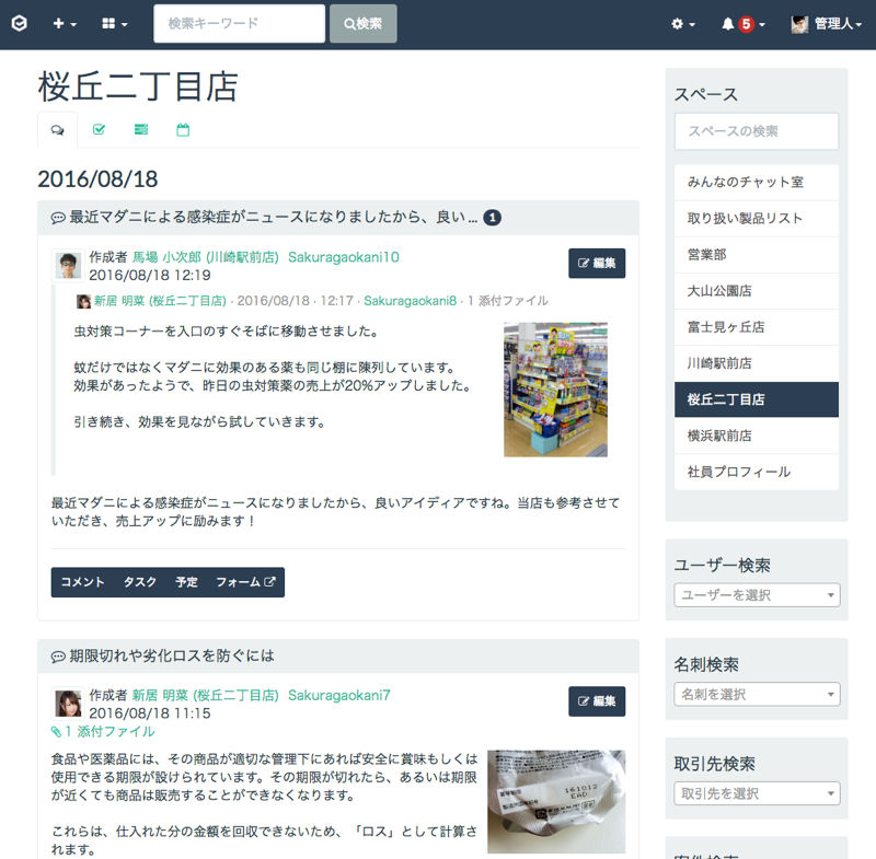 Dispatch activity policies and sales materials etc. from HQ to each store. Since footprints are attached, it is certain to see whether or not to read. Also, feedback from the site can be linked to the next activity.