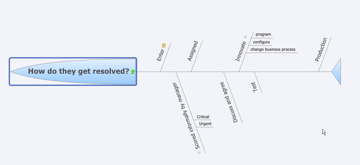 This diagram explains how issues are entered, scored, assigned, and discussed. Then a solution is built, tested and put into production.