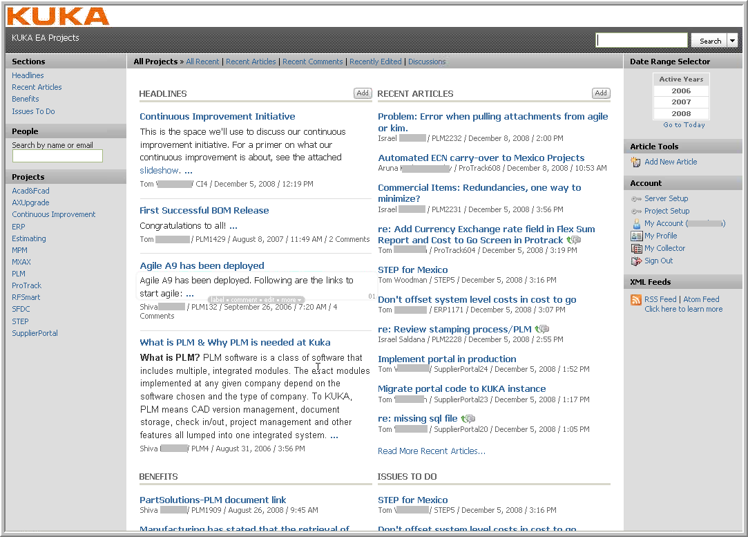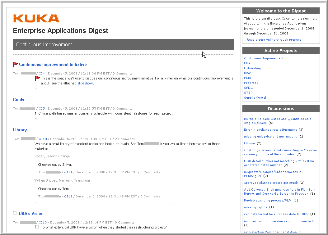 A detailed case study on KUKA Systems titled A Solution for Managing (and Maximizing Change) (login required) is published at Intranets Today.